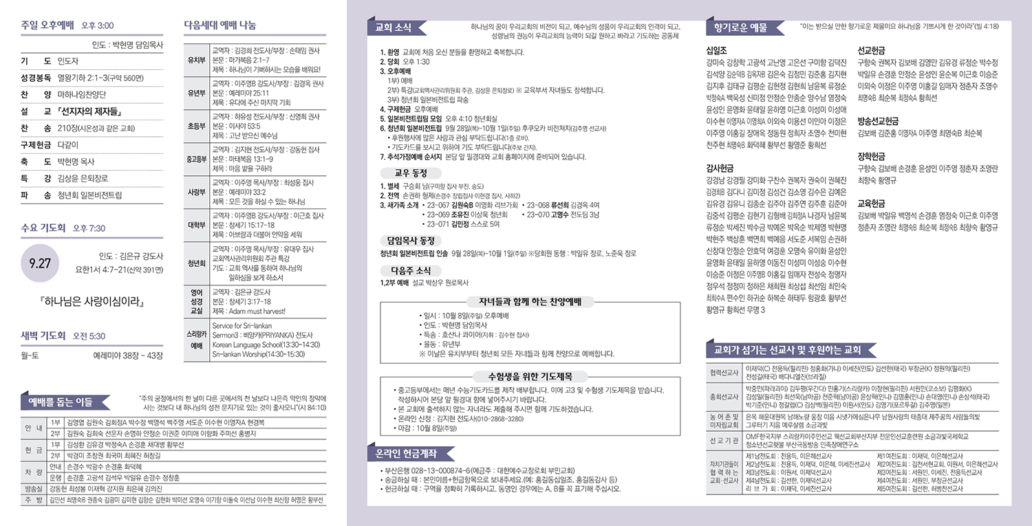 2023년 9월 24일자 주보입니다.